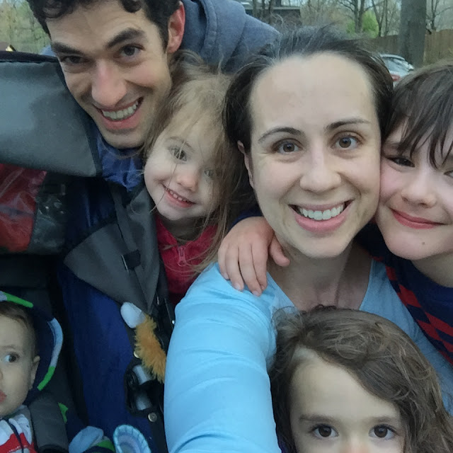 Also, look at how happy my children are. Chris stopped just down the block and let Lily out of the stroller to run home, and we cheered for her as she ran into the driveway. She was so proud of herself! Daisy tried to run with us from the playground home, but got tired. Still, she tried mightily, and also felt victorious when she finished her run. And Caleb started out super fast, and commented at the end of the run that he didn't complain at all - and he was really proud of that. I love my sweet boy, and I am proud of him.